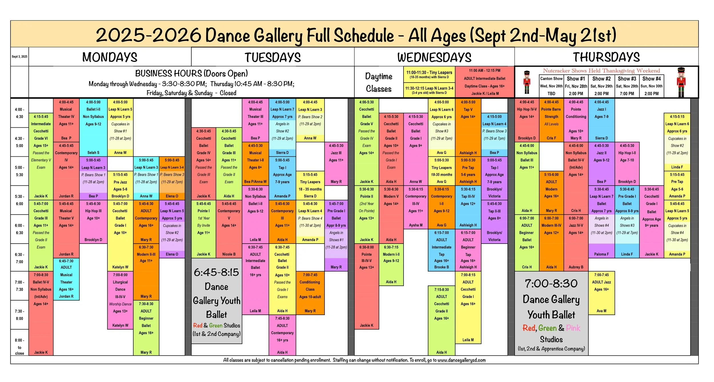 2025-2026 Full Class Schedule